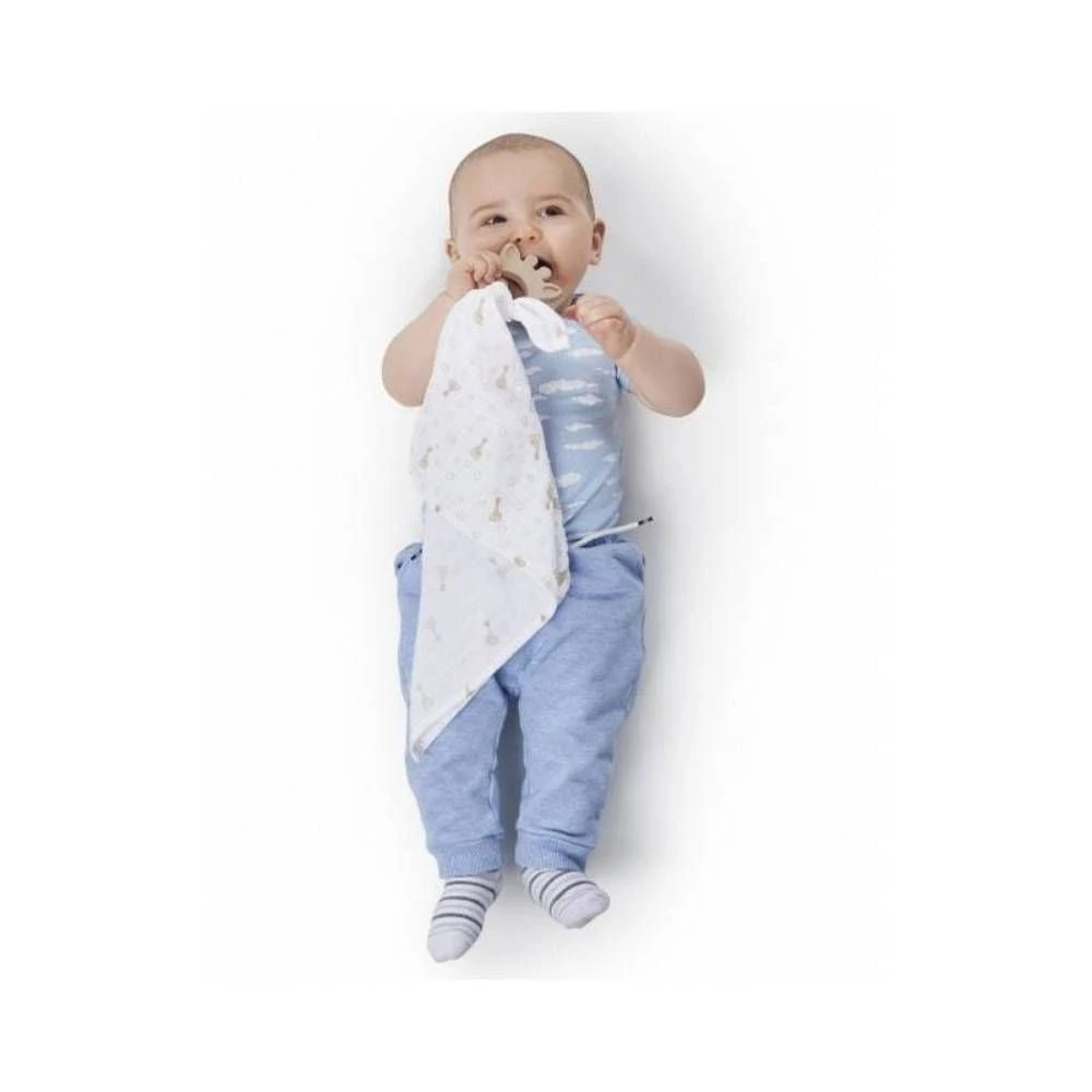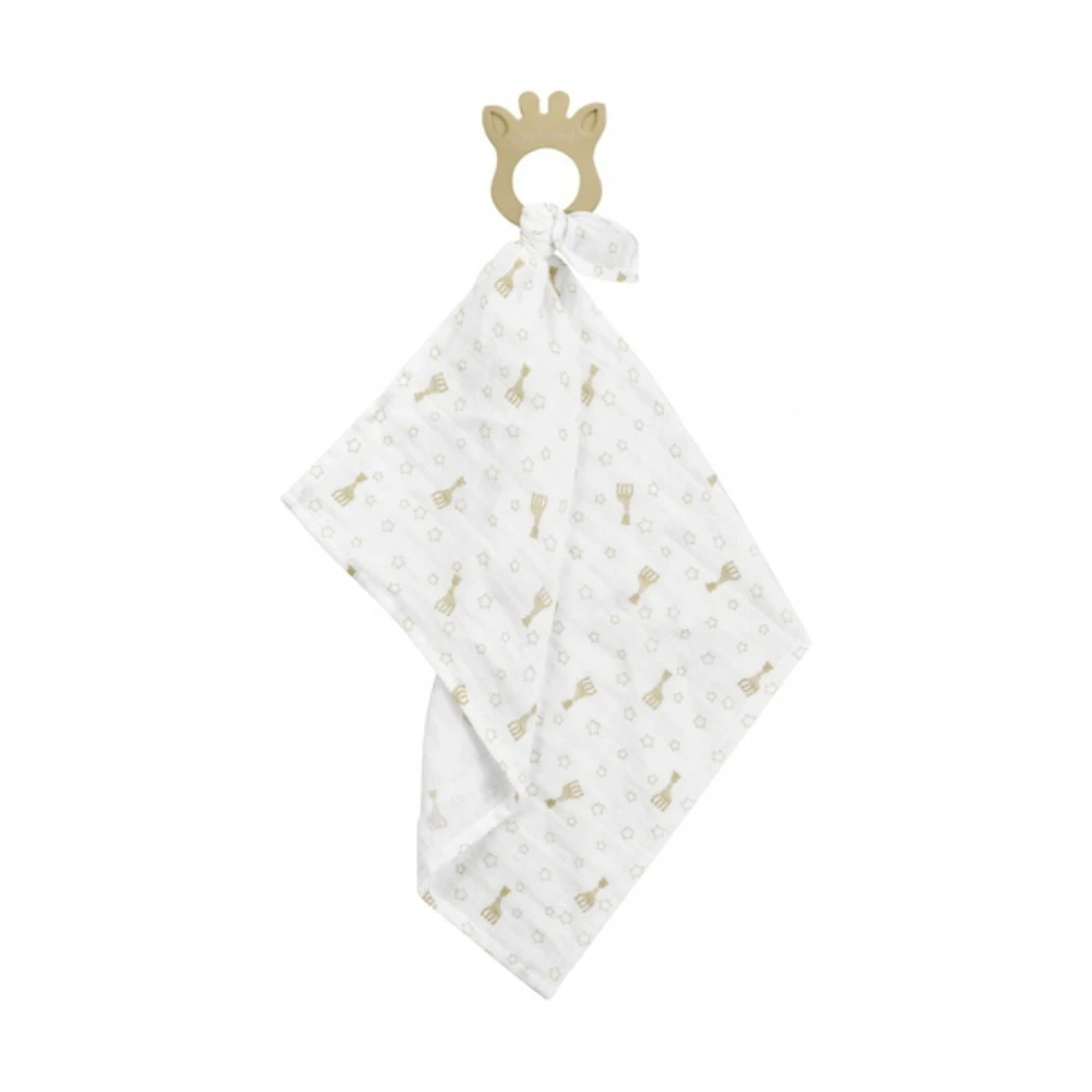 Cet anneau de dentition avec son lange Sophie la Girafe va devenir un accessoire indispensable dans le quotidien de bébé, son lange en coton 100% bio sera le nouveau doudou préféré de bébé ! Celui-ci est attaché par un nœud à un anneau de dentition qui soulagera bébé lors de ses moments de douceur avec doudou.