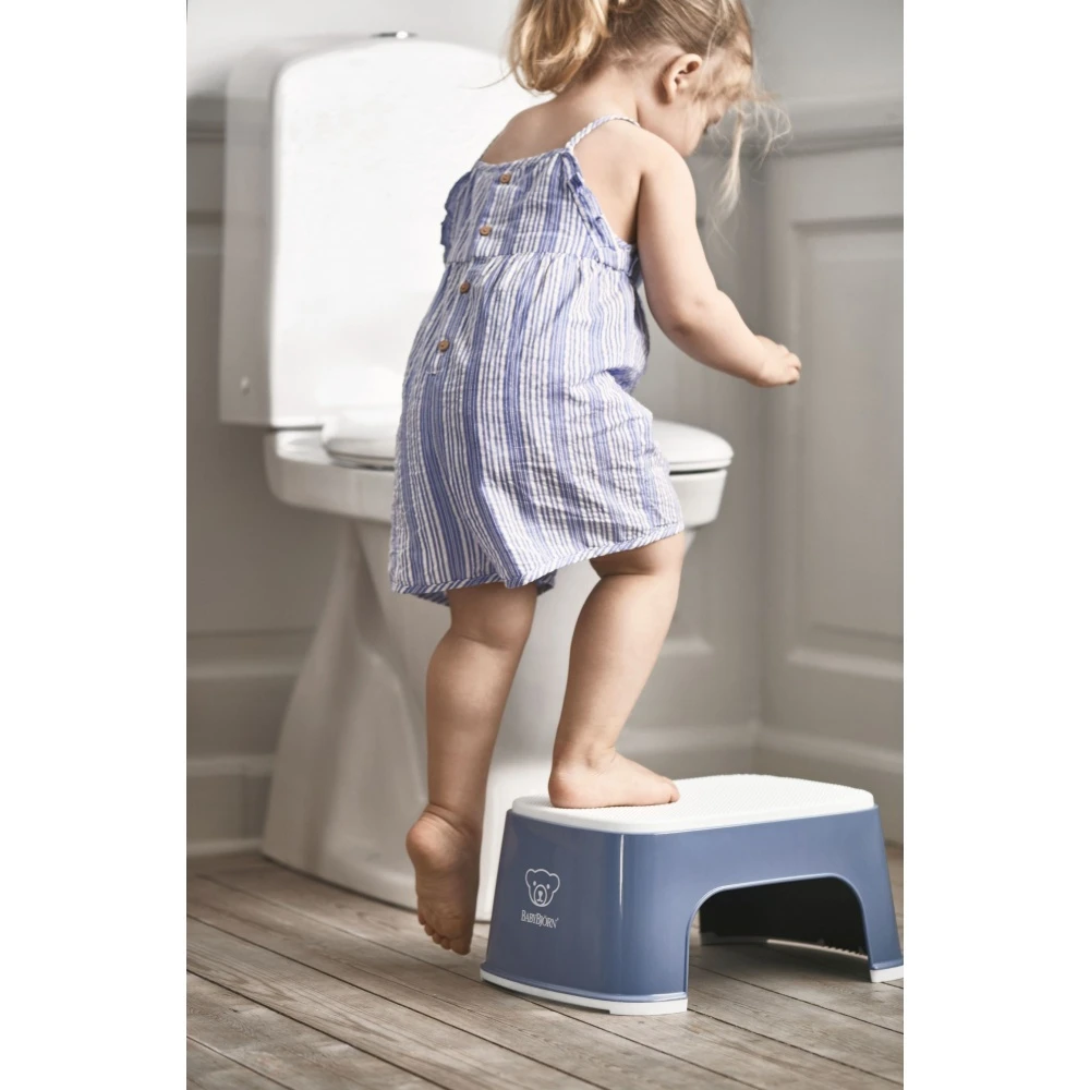Le Marche pied enfant bleu profond et blanc de chez Babybjorn. Ce marche pied est l’indispensable à votre enfant afin qu’il puisse atteindre les toilettes, le lavabo ou un placard.