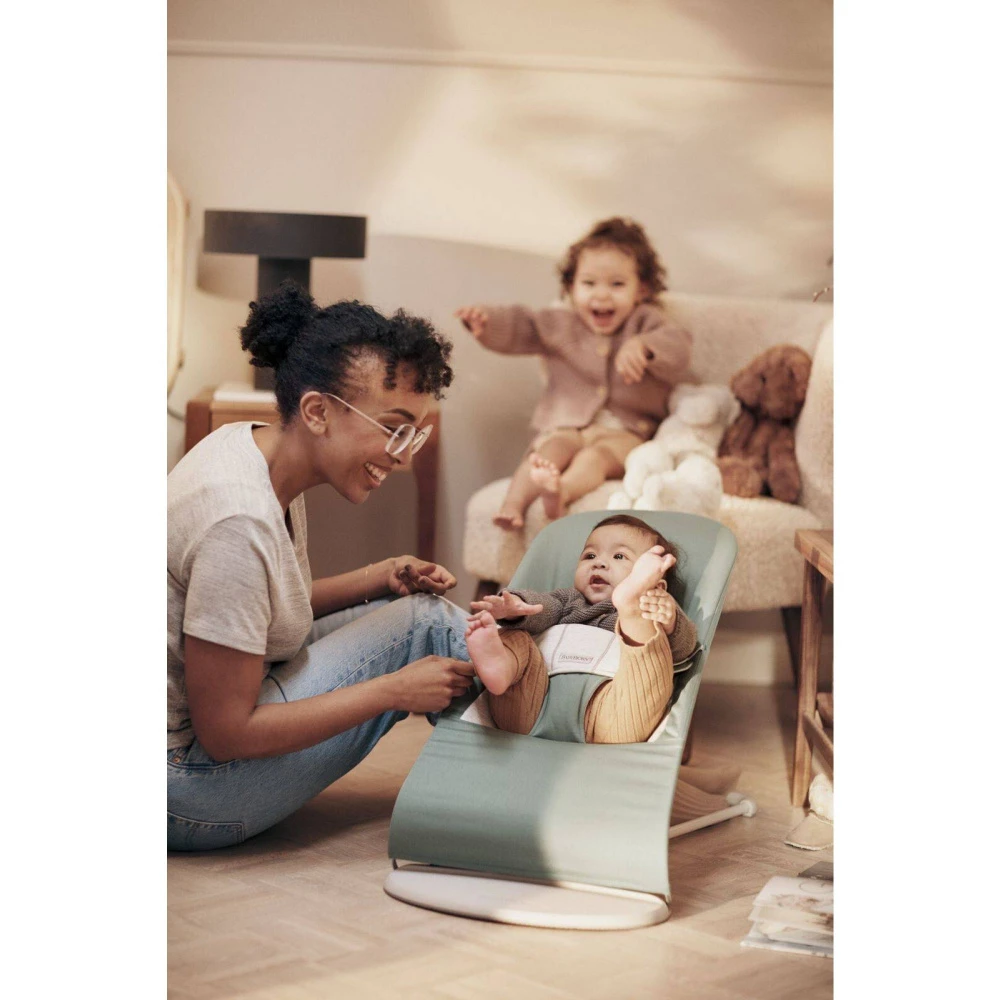 Le Transat bébé balance soft vert sauge et gris clair de chez Babybjorn. Fourni avec une housse en coton très douce, vous pourrez l’utiliser dès la naissance de votre enfant jusqu’à ses 2 ans environ. Évolutif, vous pouvez l’utiliser en transat jusqu’à 9kg. Par la suite, il suffit de retourner la housse pour le transformer en fauteuil confortable jusqu’à 13 kg. Facile à déplacer et à transporter, vous pouvez vous équiper d’un sac de transport (vendu séparément). Votre enfant sera apaisé par le balancement naturel de ce transat bébé. Il est déhoussable ce qui vous permettra de facilement nettoyer la housse ou de la changer pour une autre matière comme le Jersey 3D ou le Mesh. Ce transat garantit un soutien optimal du dos, de la nuque et de la tête de votre bébé.