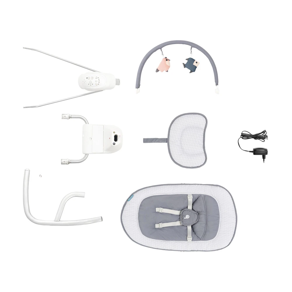 - Grâce à sa fonction détecteur de mouvement, la balancelle peut se déclencher automatiquement lorsque bébé commence à bouger : il reste ainsi calme et apaisé.