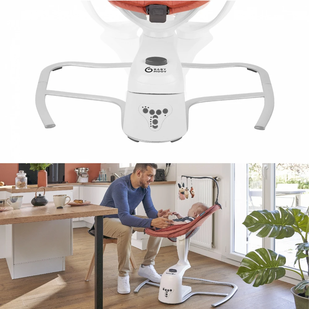 La Balancelle swoon motion terracotta de la marque Babymoov possède deux modes de balancement, de droite à gauche ou d’avant en arrière. Pratique, elle est équipée d’un réducteur pour les nouveau-nés et son détecteur de mouvements permet au balancement de se déclencher automatiquement dès que bébé se met à bouger.