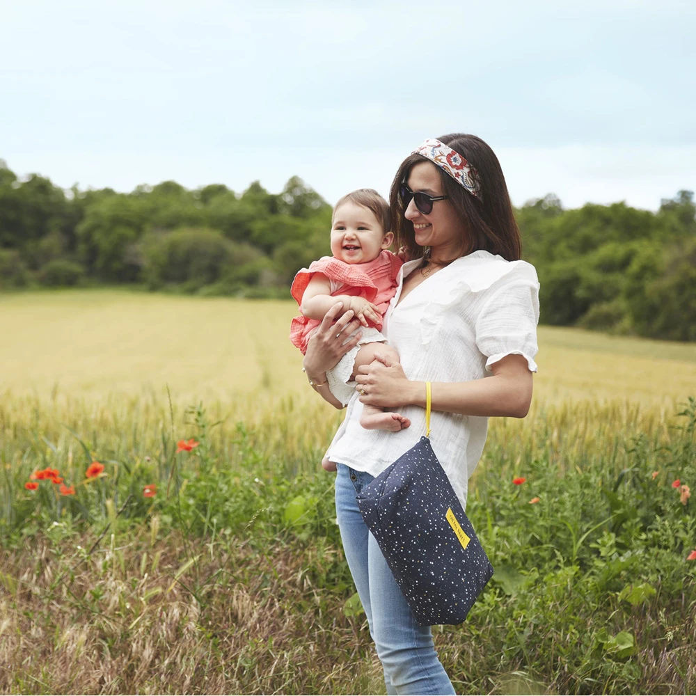 - Astucieux: la dragonne de la grand pochette permet de transporter facilement son kit à langer