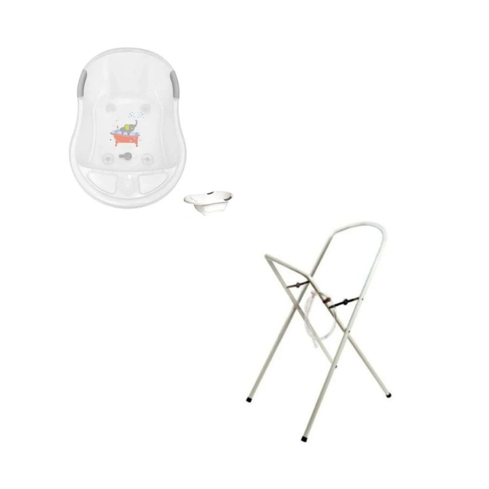 Baignoire bébé éléphant blanche avec vidange + support à pied