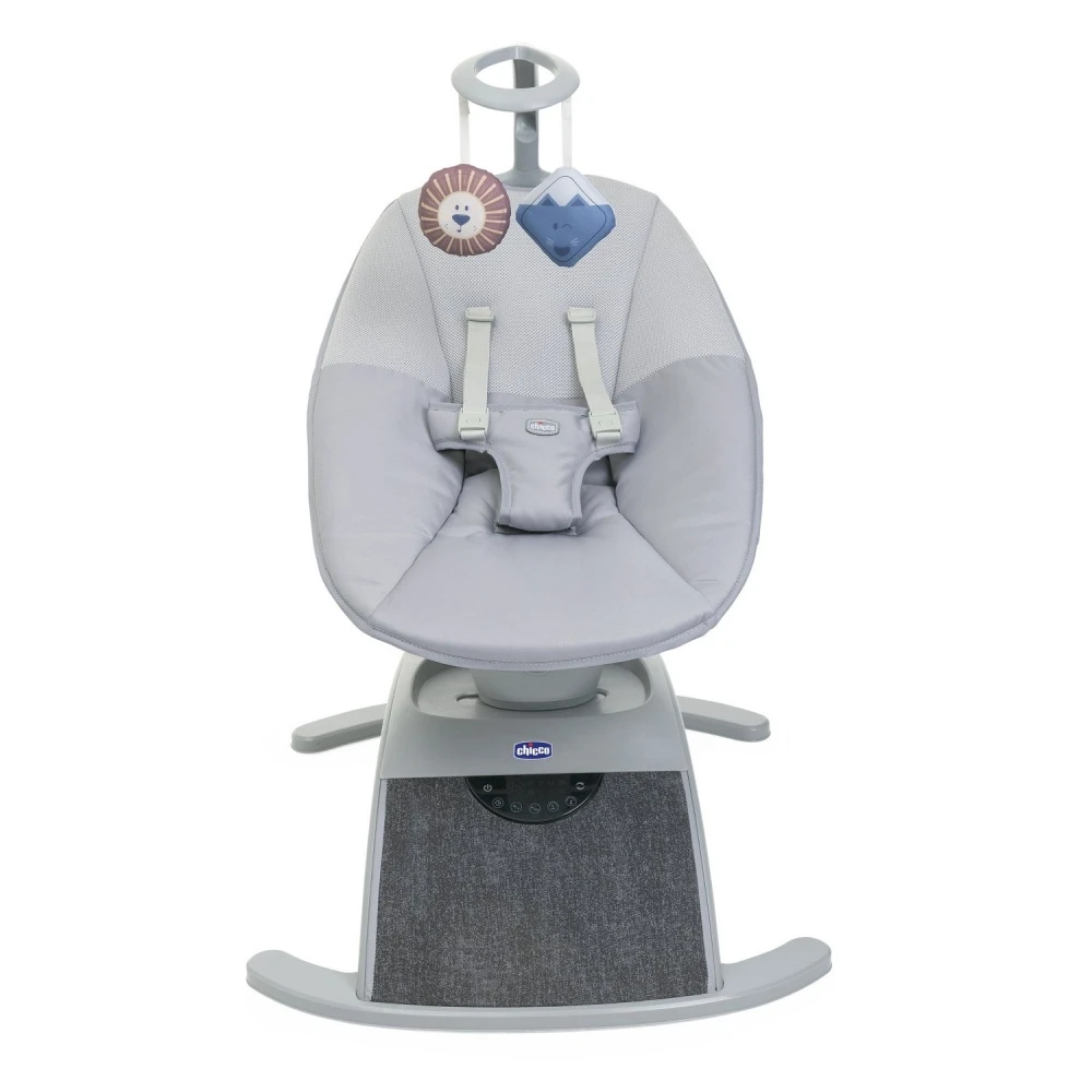 Optez pour la Balancelle comfy wave silversping de chez Chicco. Utilisable dès la naissance à 9 kg. Électrique, cette balancelle bébé a 8 mouvements oscillants et berçants différents et 5 vitesses pour s’adapter à tous les bébés. Pratique, le dossier et inclinable sur 3 positions différentes.