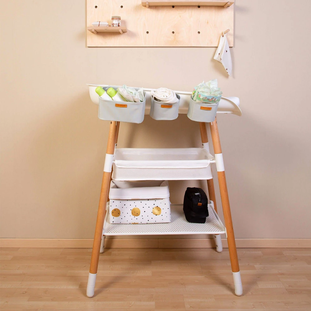 Découvrez la Table à langer evolux blanche de la marque Childhome. Elle possède un design minimaliste qui s’intégrera parfaitement dans la chambre de votre enfant. Elle est dotée de 4 pieds en bois, d’un matelas à langer (housse de matelas vendue séparément) en maille d’air 3D, d’un panier de rangement et de 4 roues pour faciliter les déplacements au sein de votre habitation. Cette table à langer est utilisable dès la naissance de votre bébé et jusqu’à 15 kg.