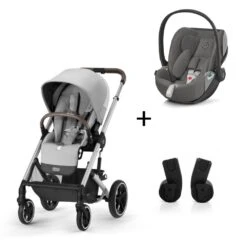 Le Pack duo poussette balios s lux + cloud z2 + adaptateurs – lava grey de la marque Cybex. Utilisable de la naissance à 4 ans environ. Le pack est composé de :