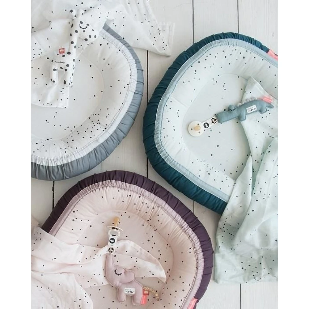 Un ensemble de deux langes en mousseline douce de couleur pastel saupoudrés de pois Dreamy.