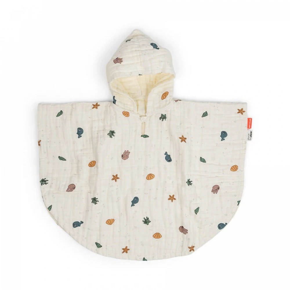 Le Poncho de bain sea friends beige de chez Done by Deer. Conçu en mousseline bio certifié GOTS, ce poncho de bain est composé d’une capuche pour maintenair au chaud votre enfant à la sortie de bain. Ce poncho est équipé de boutons pressions sous les bras pour faciliter son utilisation.