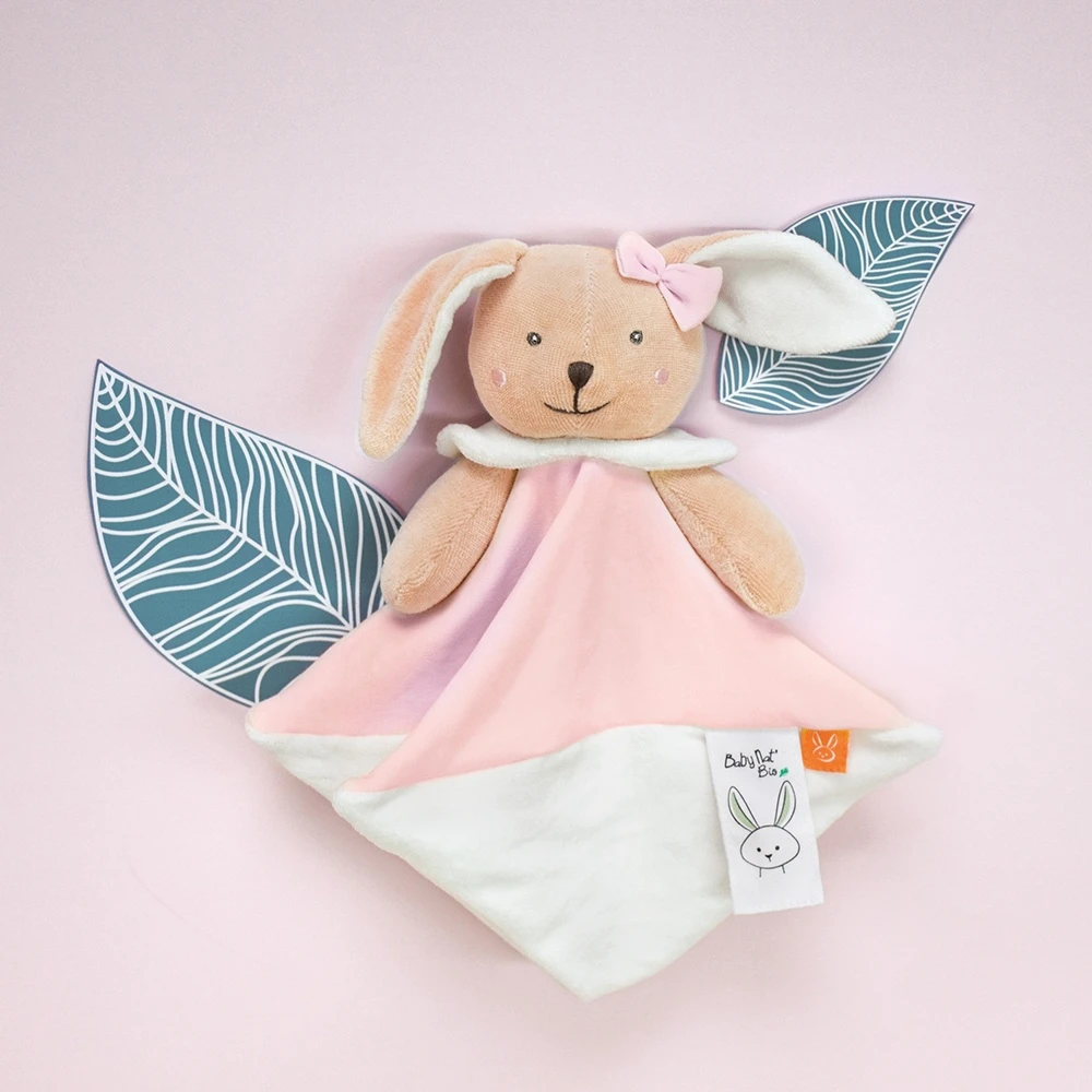 Optez pour ce Doudou lapin rose bio de la marque Baby’Nat et facile à prendre en main que votre enfant adorera câliner. Sa douceur et sa couleur apaisante aideront à bercer et endormir votre enfant dès la naissance. Ce produit fabriqué à partir de jersey et de velours de coton biologiques en fait un produit éco-responsable.