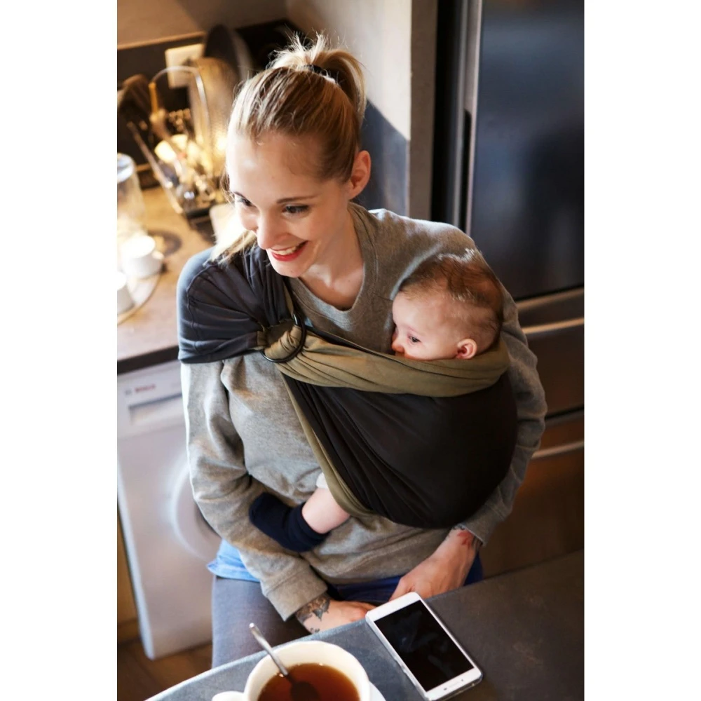 Echarpe de portage sans nœud – anthracite, olive (réversible)