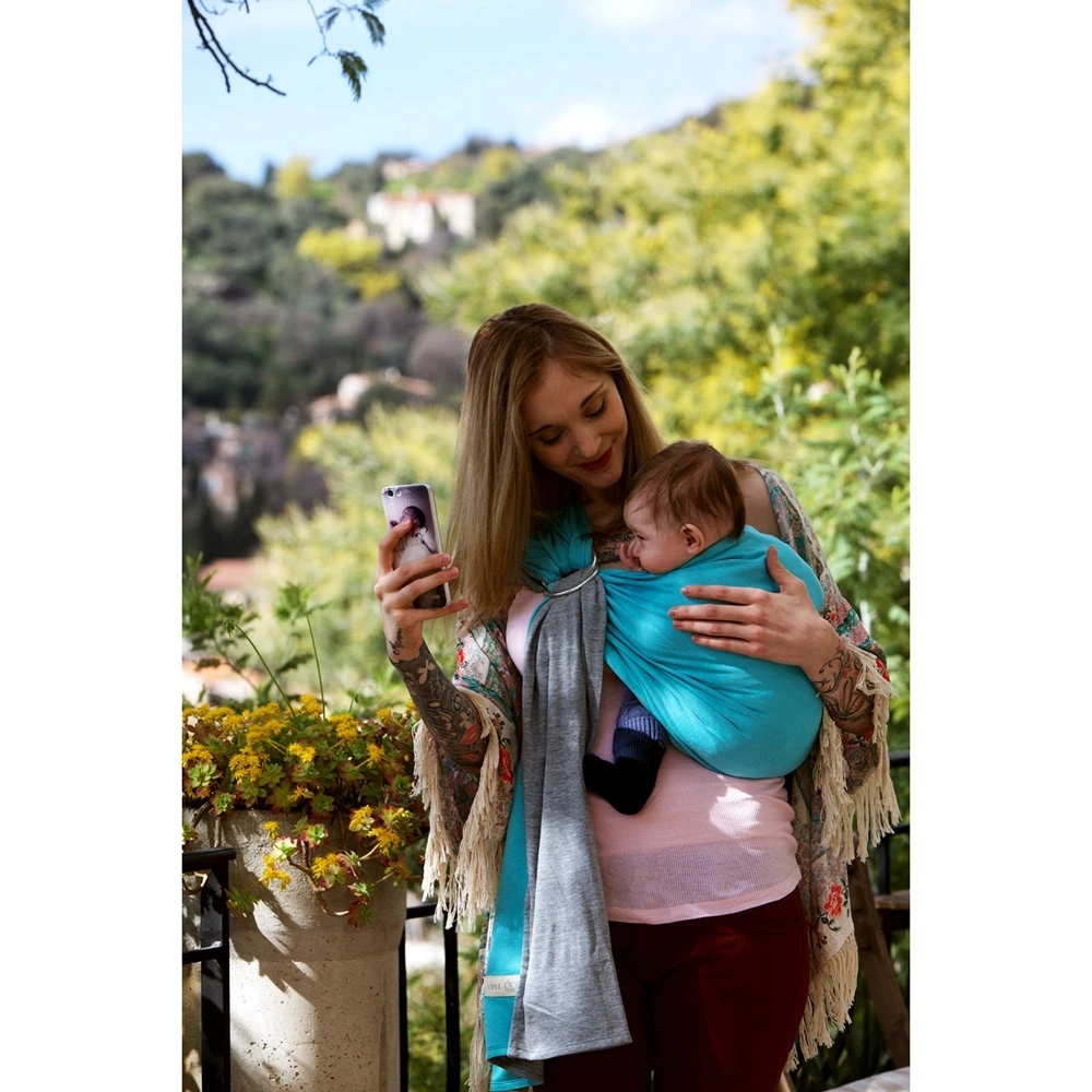 Le portage en porte-bébé sling interprété avec un nouveau tissu Love Radius. Simple, rapide et sans nœud, unisexe, taille unique.