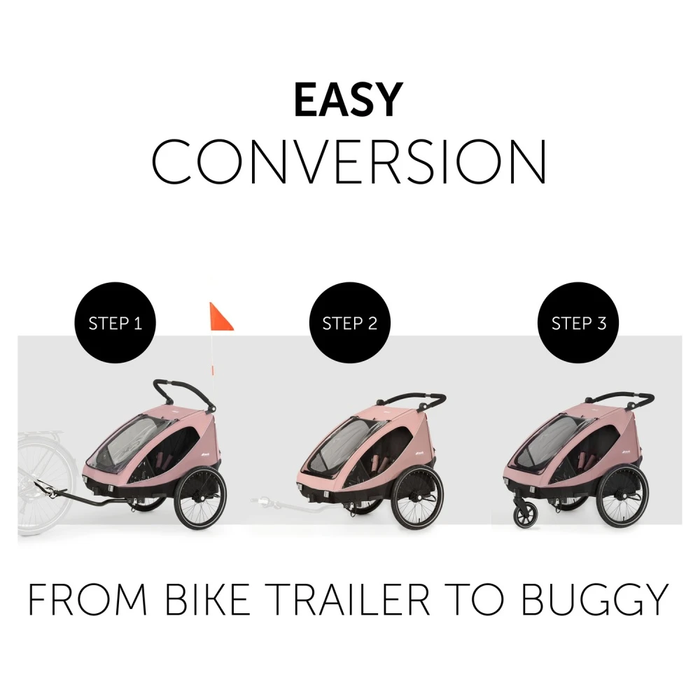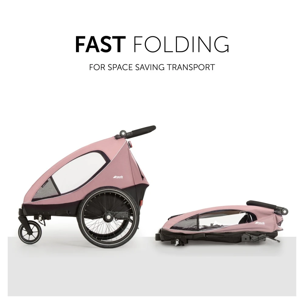 Le chariot Dryk Duo Rose de la marque Hauck. Utilisable pour les enfants de 6 mois à 4 ans. C’est la remorque idéale pour les promenades avec 1 ou 2 enfants. Vous pourrez le fixe à votre vélo pour vous déplacer en famille ou encore transformer le chariot en poussette. Le chariot Dryk Duo est la poussette multifonctionnelle à avoir ! Sur la route, vous ne sentirez pas les tremblements grâce au siège rembourré qui apporte un maximum de confort sans compter l’habitacle à température contrôlée…mais aussi la moustiquaire lors de vos balades en été le long de la mer ou le long d’un lac ! Arrivée à destination, pourquoi ne pas se faire un petit pique-nique que vous aviez préparé et soigneusement rangé dans le coffre de contenance 6 kg maximum. Puis ne vous inquiétez pas, le chariot possède un feu arrière afin d’être visible. Un conseil, vous pourrez nettoyer me chariot avec de l’eau uniquement et quelques produits d’entretiens ménagers. Surtout n’utilisez pas de produit corrosif.