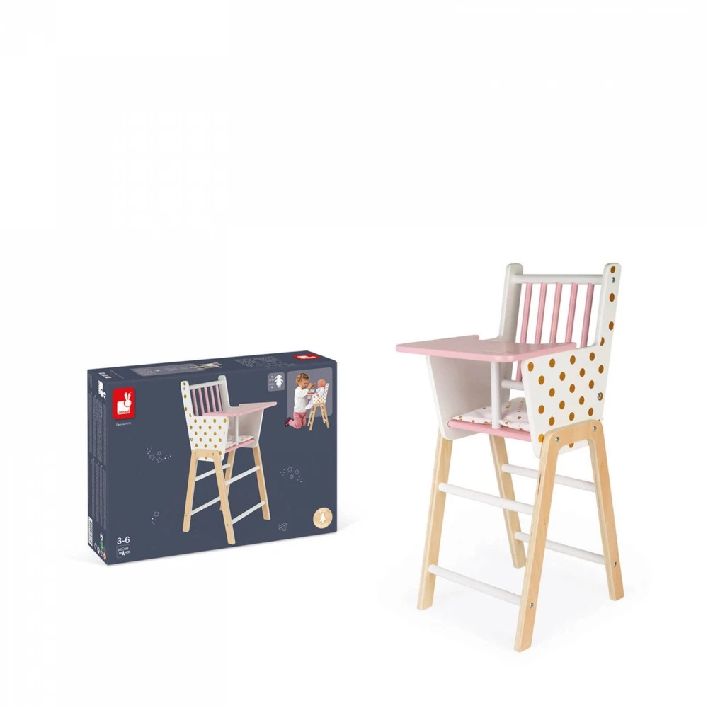- Chaise haute pour poupée conçue en bois