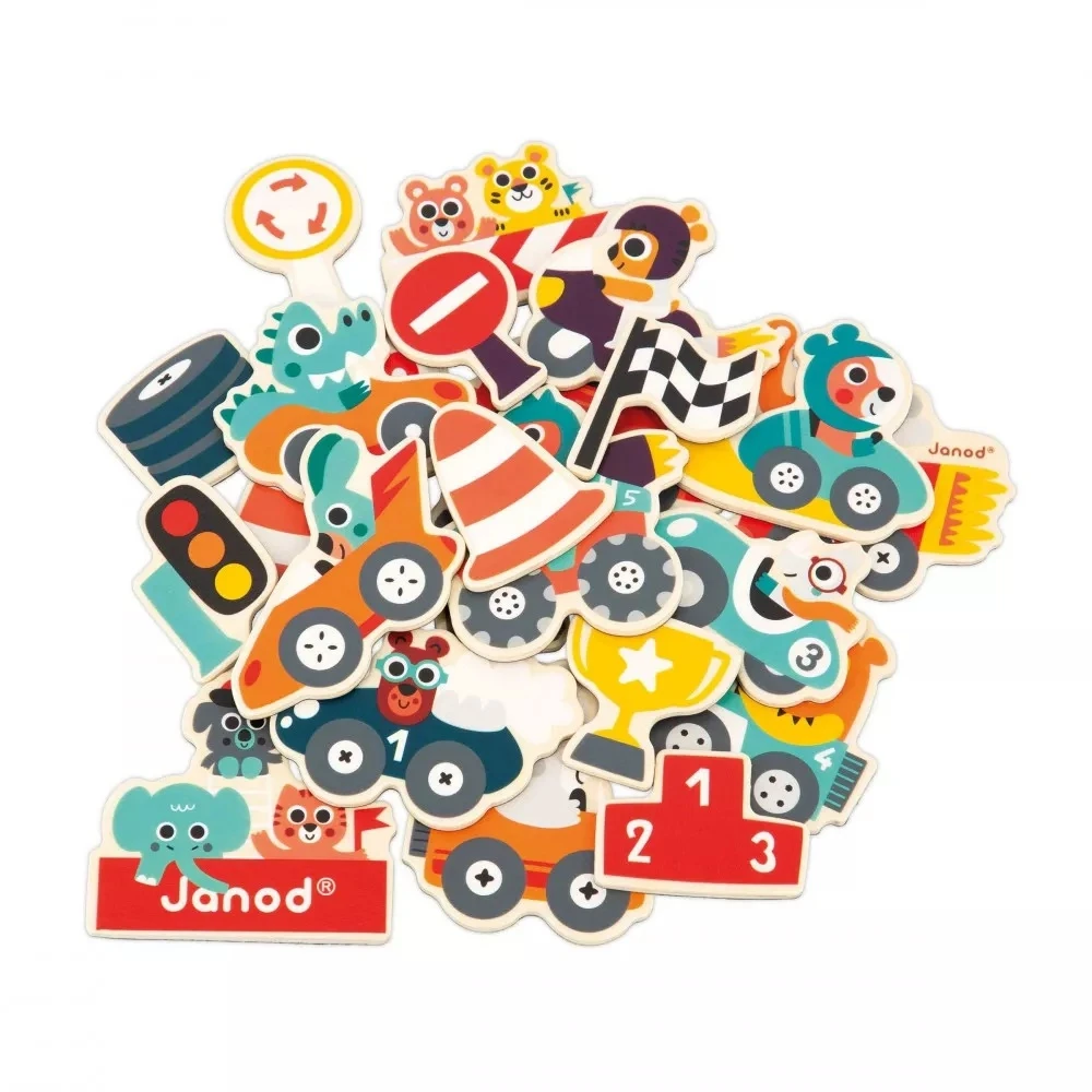 Optez pour le Lot de 24 magnets bolides de la marque Janod. Ce coffret est composé de 24 magnets en bois qui disposent tous d’un aimant. Votre enfant pourra jouer avec et les poser à sa guise sur différentes surfaces comme un réfrigérateur.