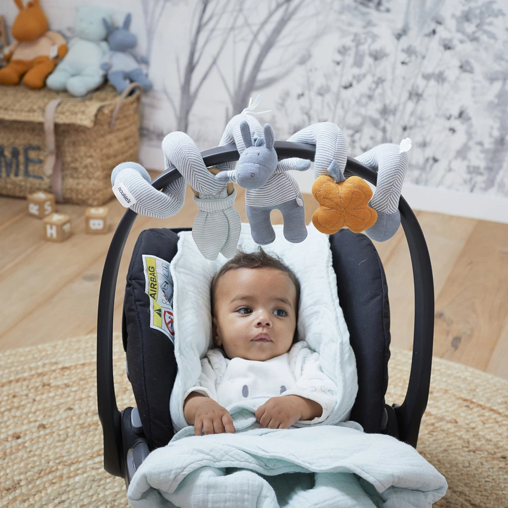 Jouet de lit bébé spirale d’activités coton bio paco bleu