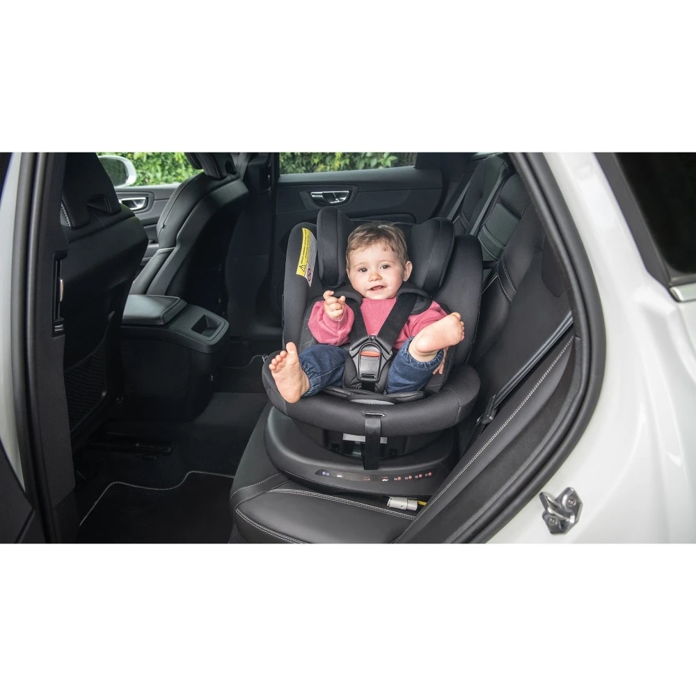 Pratique, ce siège auto pivotant s’incline sur 4 positions dont la position demi-assise / demi-couchée. Votre enfant sera attaché dans un premier temps avec le harnais à 5 points rembourré puis avec la ceinture de sécurité de la voiture.