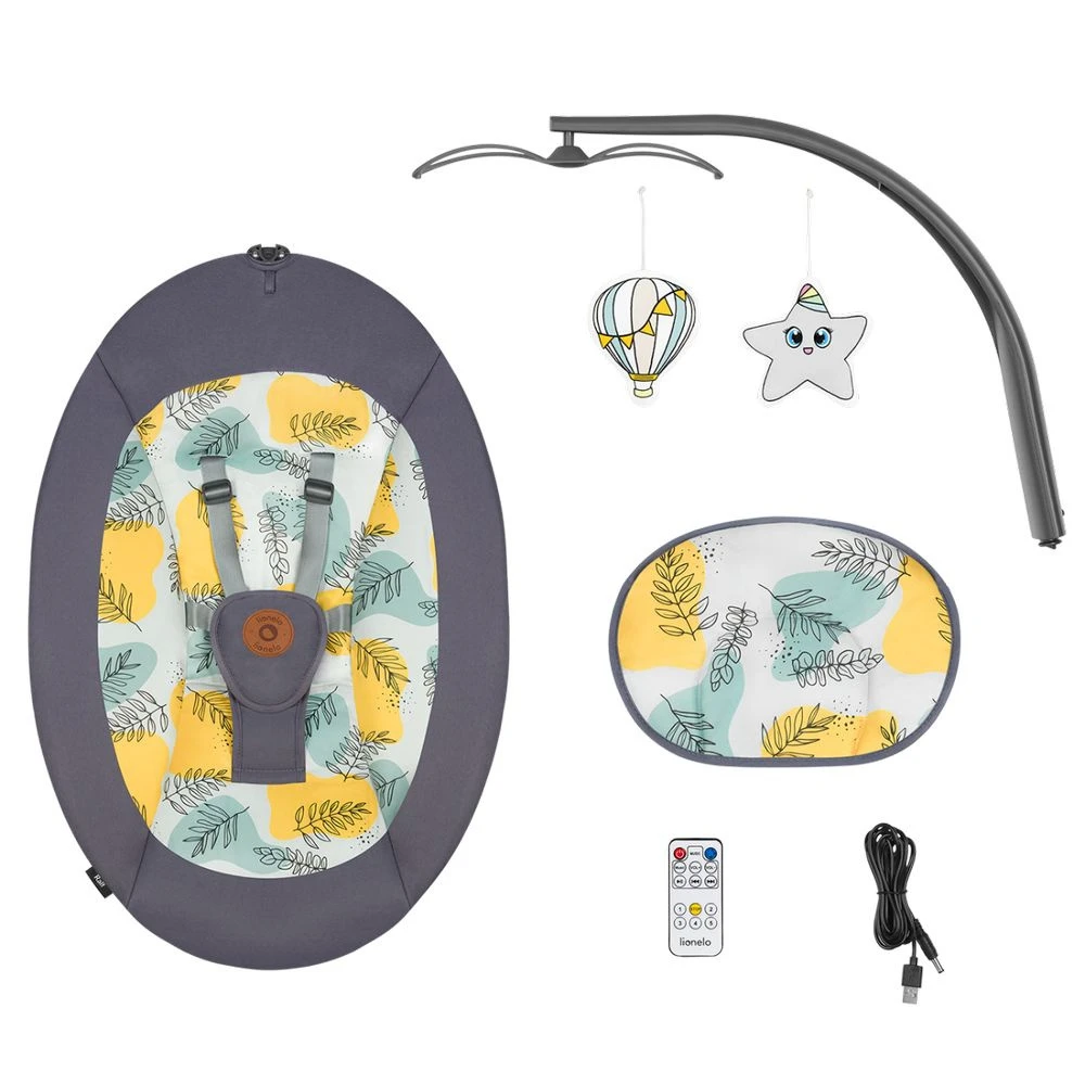 Craquez pour le Transat balancelle rina grey concrete de la marque Lionelo. Ce transat interactif a été conçu pour divertir votre bébé. Il possède de nombreuses fonctionnalités qui feront le bonheur de votre tout-petit. Il est doté d’un mobile d’éveil électrique et d’un système d’éclairage qui diffuse 7 couleurs. Idéal pour développer les sens de votre enfant. Il est également équipé de 12 mélodies qui apaiseront votre bébé. Il est même possible d’y intégrer vos propres musiques via un lecteur USB. Le transat possède une fonction de bercement automatique réglable (durée de 8, 15 ou 30 minutes), un dossier réglable sur plusieurs positions