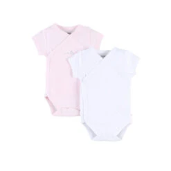 Caractéristiques du Lot de 2 body croisés manches courtes rose/blanc 0 mois :