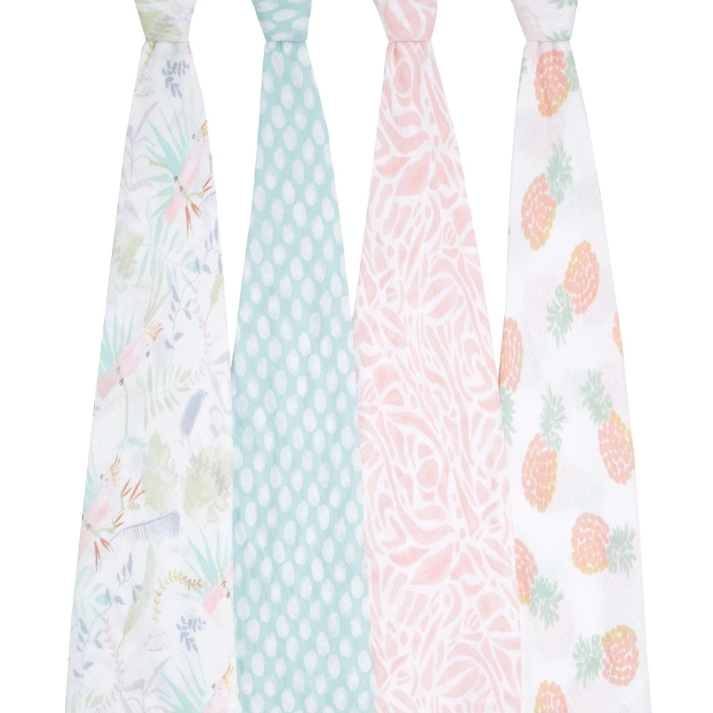Caractéristiques du Lot de 4 maxi-langes en mousseline de coton tropicalia: