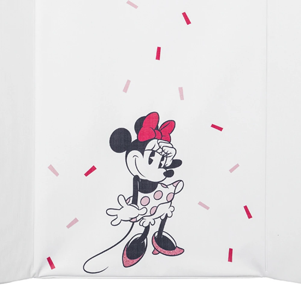Imperméable, ce Matelas à langer luxe minnie confettis convient à de nombreux modèles de tables à langer grâce à sa taille standard.