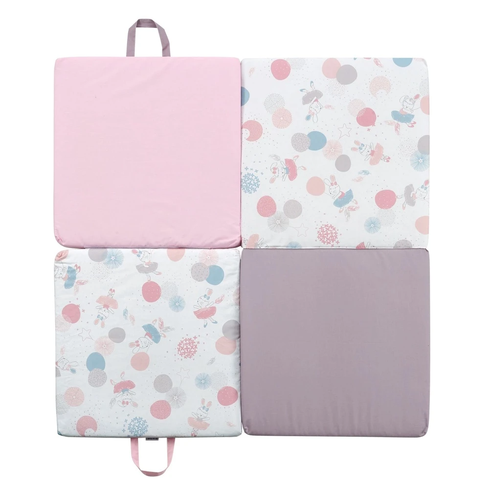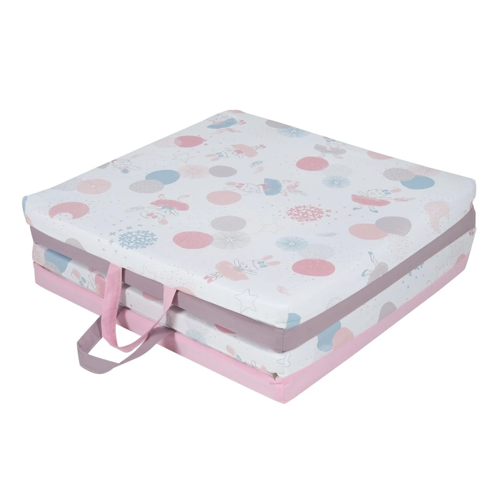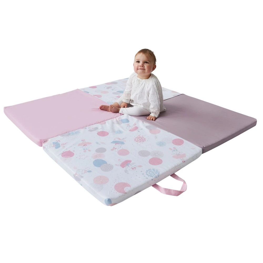 Le Matelas tapis malin ballerine de chez Tinéo. Le tapis malin est évolutif. Il servira de tapis de jeux à votre bébé. Plié en deux votre bébé pour l’utiliser comme couchage. Parfait pour les voyages. Vous pourrez le transformer le pouf également.