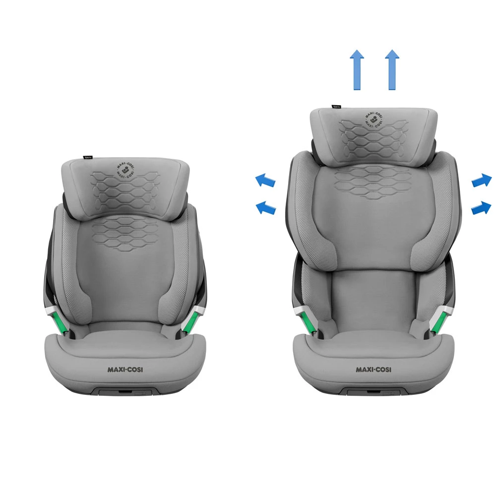 - Conçu pour les enfants entre 100cm et 150cm, le Kore Pro i-Size s’étend en hauteur mais aussi en largeur en ajustant uniquement la têtière