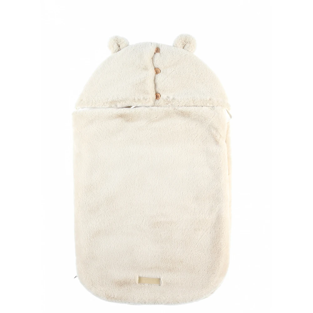 Le nid d’ange en long poil écru est idéal pour la sortie de la maternité, bébé s’y sent comme dans le ventre de sa maman.