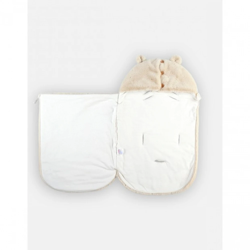 Il convient pour la mi-saison et l’hiver. Totalement pensé pour les plus petits, il s’ouvre grâce à une fermeture éclair sur le côté et convient aux sièges auto du groupe 0.