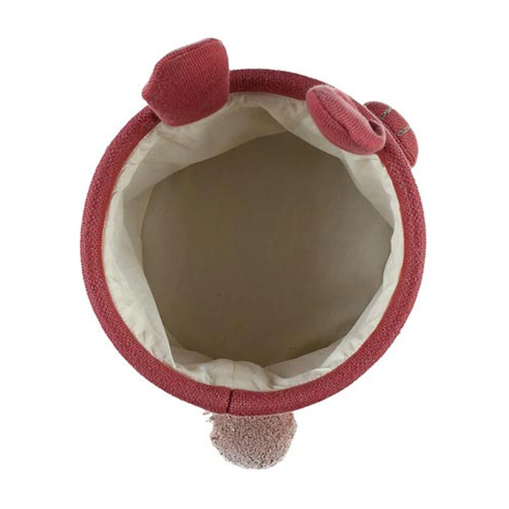 Le beauty case en jacquard de coton Biologique rose foncé de la collection Lina & Joy est très pratique sur la table à langer de bébé.
