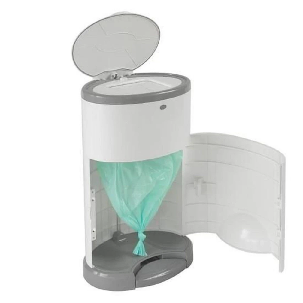 Optez pour la poubelle à couches 16L de la marque Korbell. Avec sa recharge intégrée, elle permet de contenir jusqu’à 240 couches. Son système double sas et sa matière en plastique ABS permettra de canaliser les odeurs de la poubelle. Elle est facile d’utilisation et avec un bouton de verrouillage pour la sécurité de votre enfant. Elle est disponible en plusieurs tailles et en différentes couleurs.
