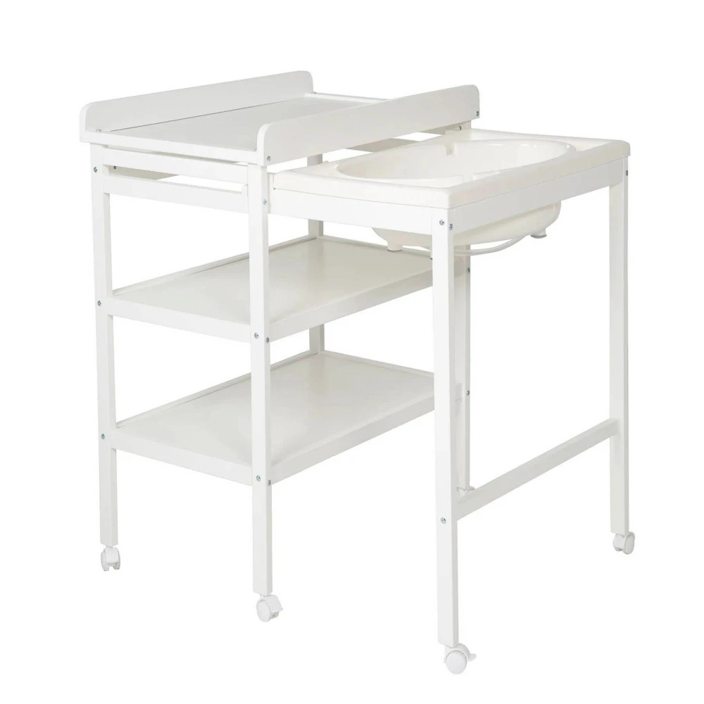 Cette Table à langer avec baignoire coulissante baby pool grise et son matelas à langer va faciliter votre quotidien. Elle est composée d’une table à langer (matelas à langer inclus) doté de deux étagères de rangement et d’une baignoire. La baignoire bébé intégrée se range facilement sous le plan à langer après utilisation. Avec ses six roulettes, optimiser le déplacement de votre table à langer au sein de votre habitation.