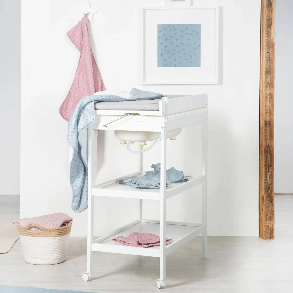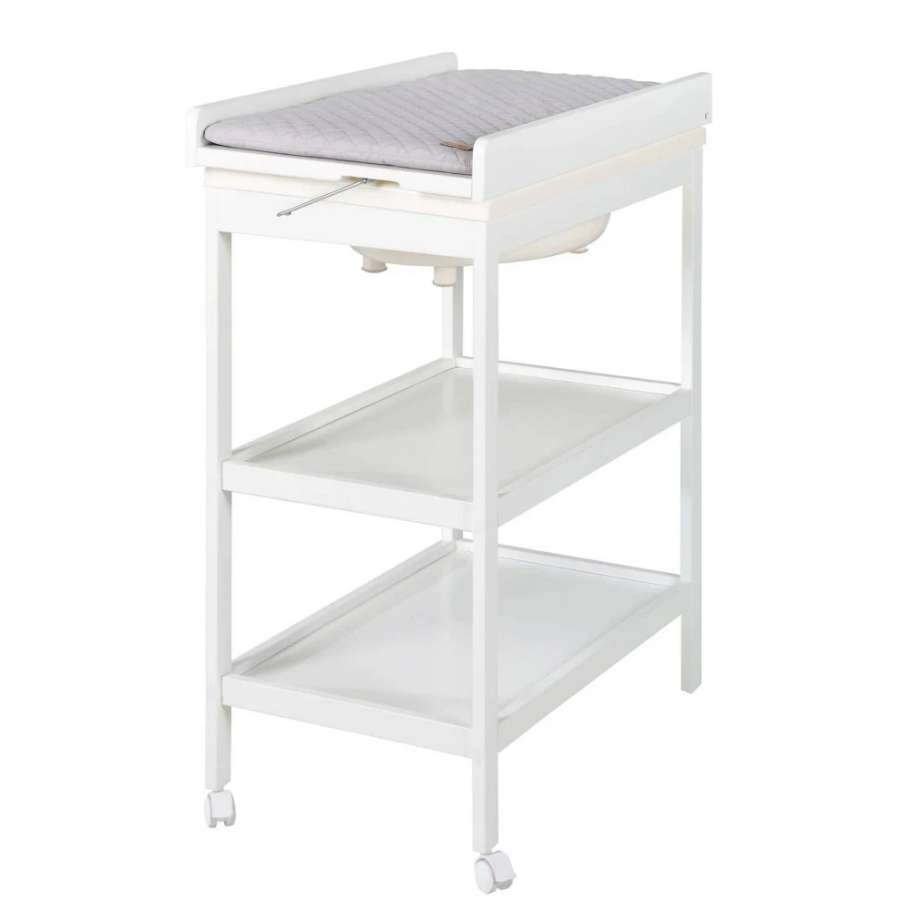 Cette Table à langer avec baignoire pliable baby pool gris et son matelas à langer va faciliter votre quotidien. Elle est composée d’une table à langer (matelas à langer inclus) doté de deux étagères de rangement et d’une baignoire. La baignoire bébé intégrée se range facilement sous le plan à langer après utilisation. Avec ses deux roulettes, optimiser le déplacement de votre table à langer au sein de votre habitation.