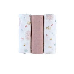 Caractéristiques du Set de 3 langes en mousseline de coton lina rose :