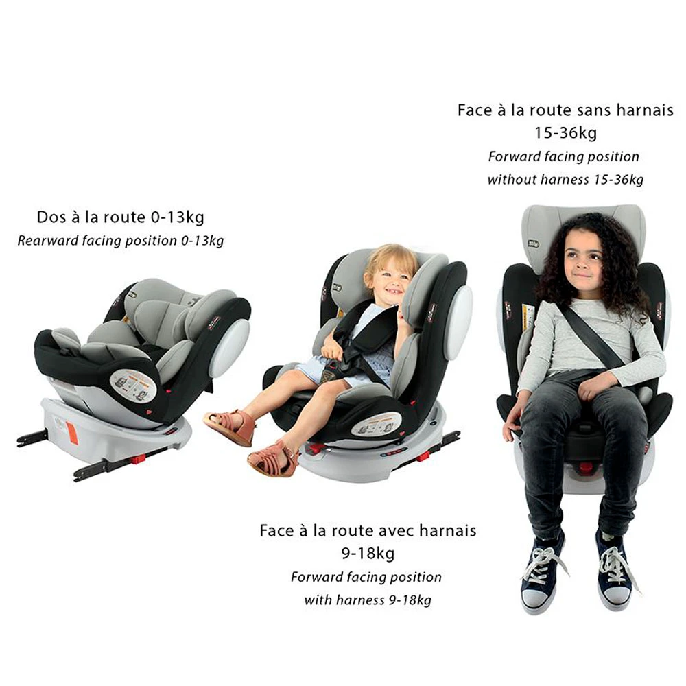 Siège auto seaty 360° isofix groupe 0+/1/2/3 gris