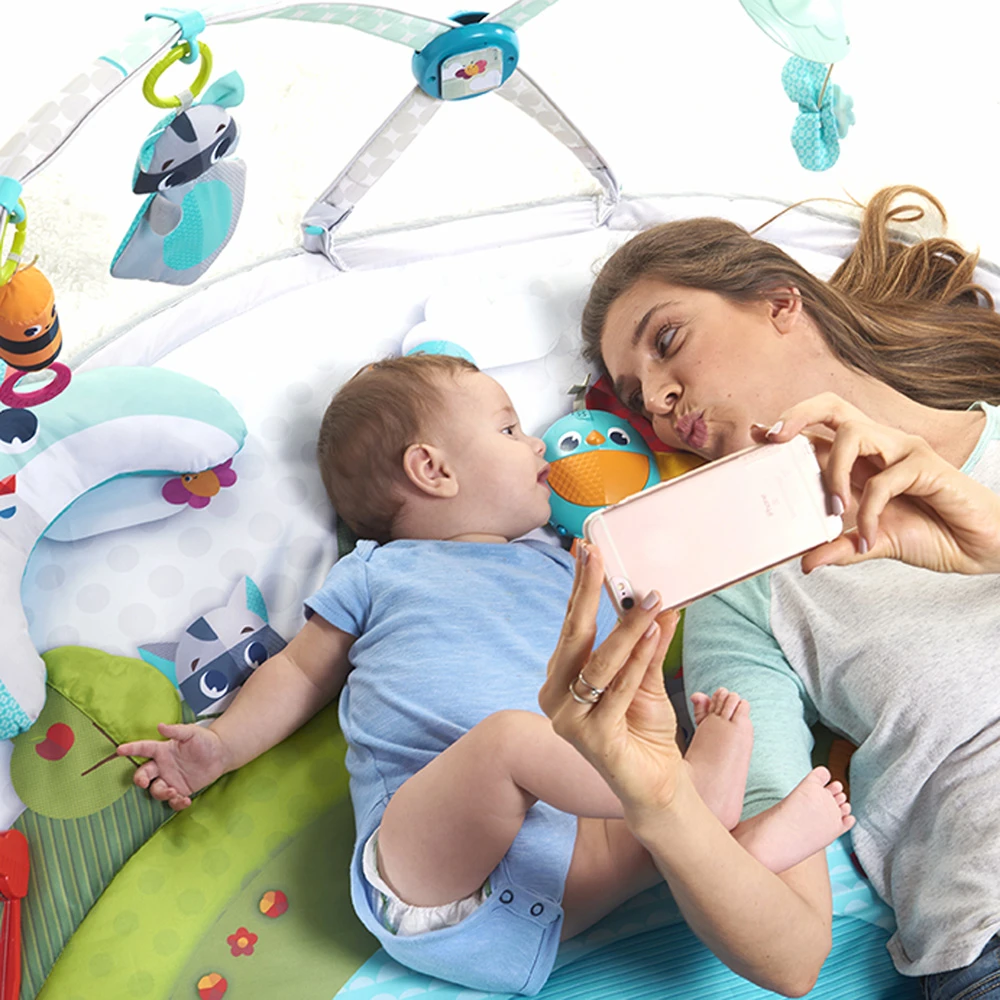 La création de liens affectifs entre l’enfant garçon et les parents est encouragée par la conception unique du tapis et le jouet enregistreur réconfortant.
