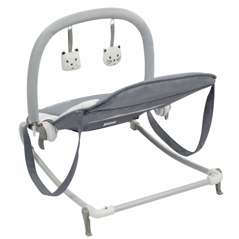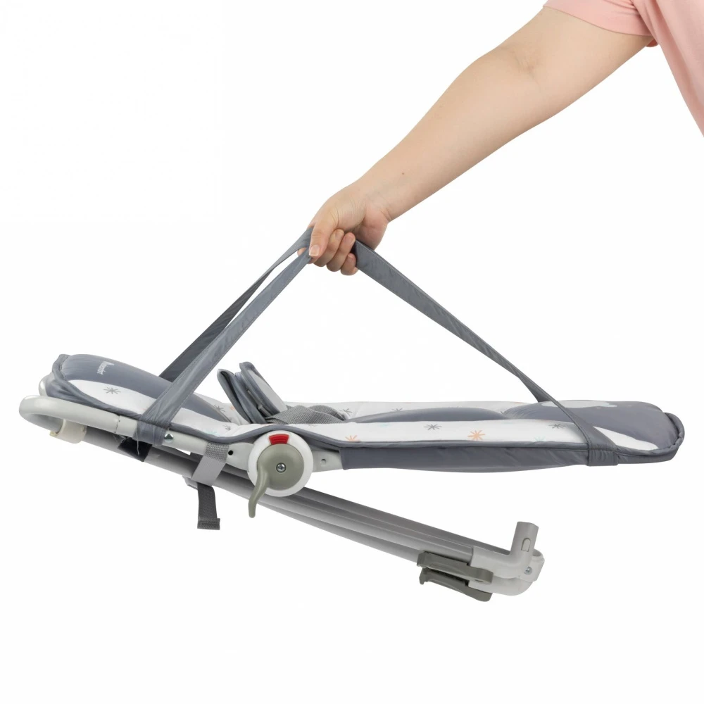 Avec ce transat ludique, vous pourrez passer d’un transat fixe à une balancelle en relevant les pieds d’un simple geste. De plus, il dispose d’une arche avec deux jouets suspendus, parfait pour amuser bébé. Et lorsque vous partirez en week-end, vous pourrez emporter facilement avec vous le Transat Starlight. Il se plie de façon compacte et dispose de poignées de transport.